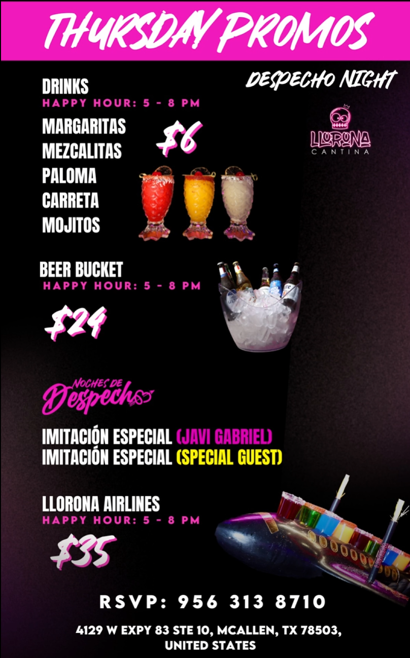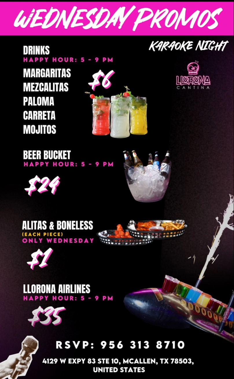 Right off W Expy 83, Llorona Cantina blends modern nightlife with classic cantina feel—bottle service touches, friendly staff, and a room that comes alive on weekends. Come for the drinks and music, stay for the atmosphere and the people you’ll meet.